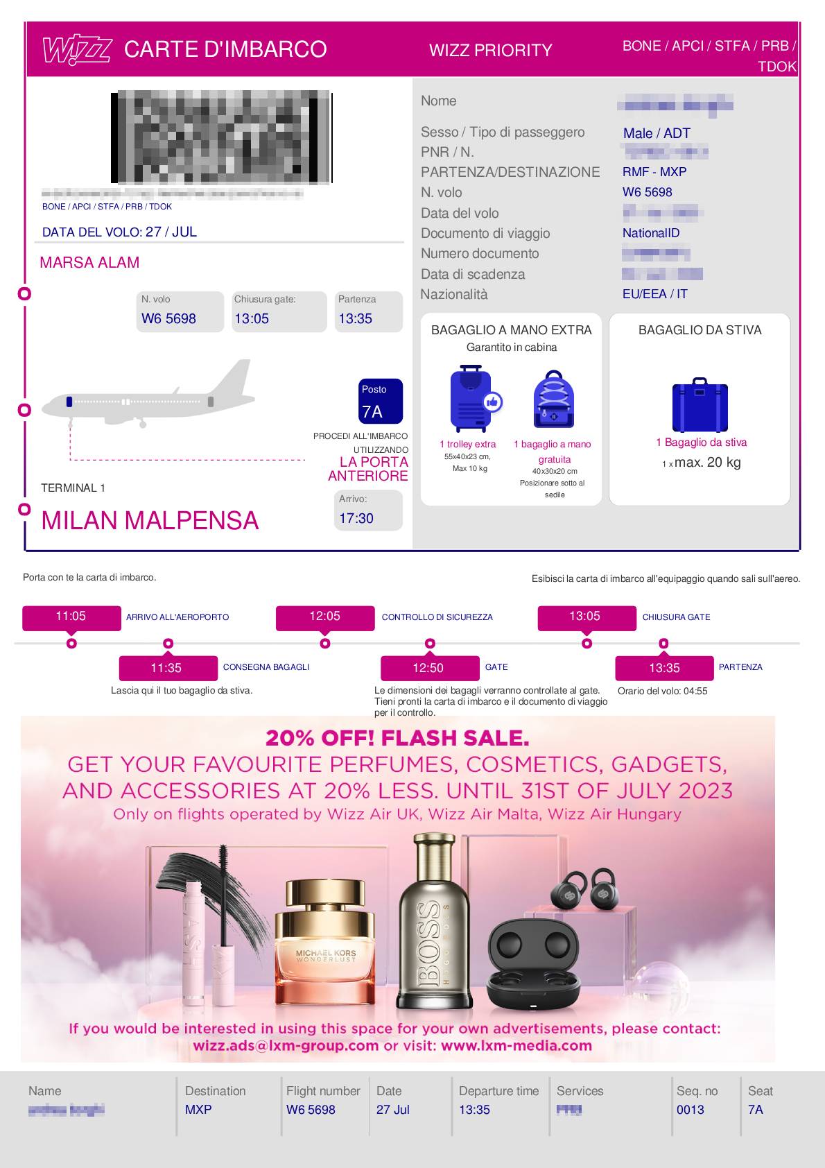 - ATTENZIONE! Il check-in online è obbligatorio per i voli Ryanair, poiché la compagnia è passata all’uso esclusivo della carta d’imbarco digitale